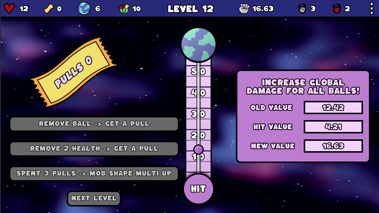 maybe you could add a dropshadow/an outline on the powerups/pulls in the levels, because it's a bit easy to miss them, tho that could be a good thing, since you have to be observant to collect them